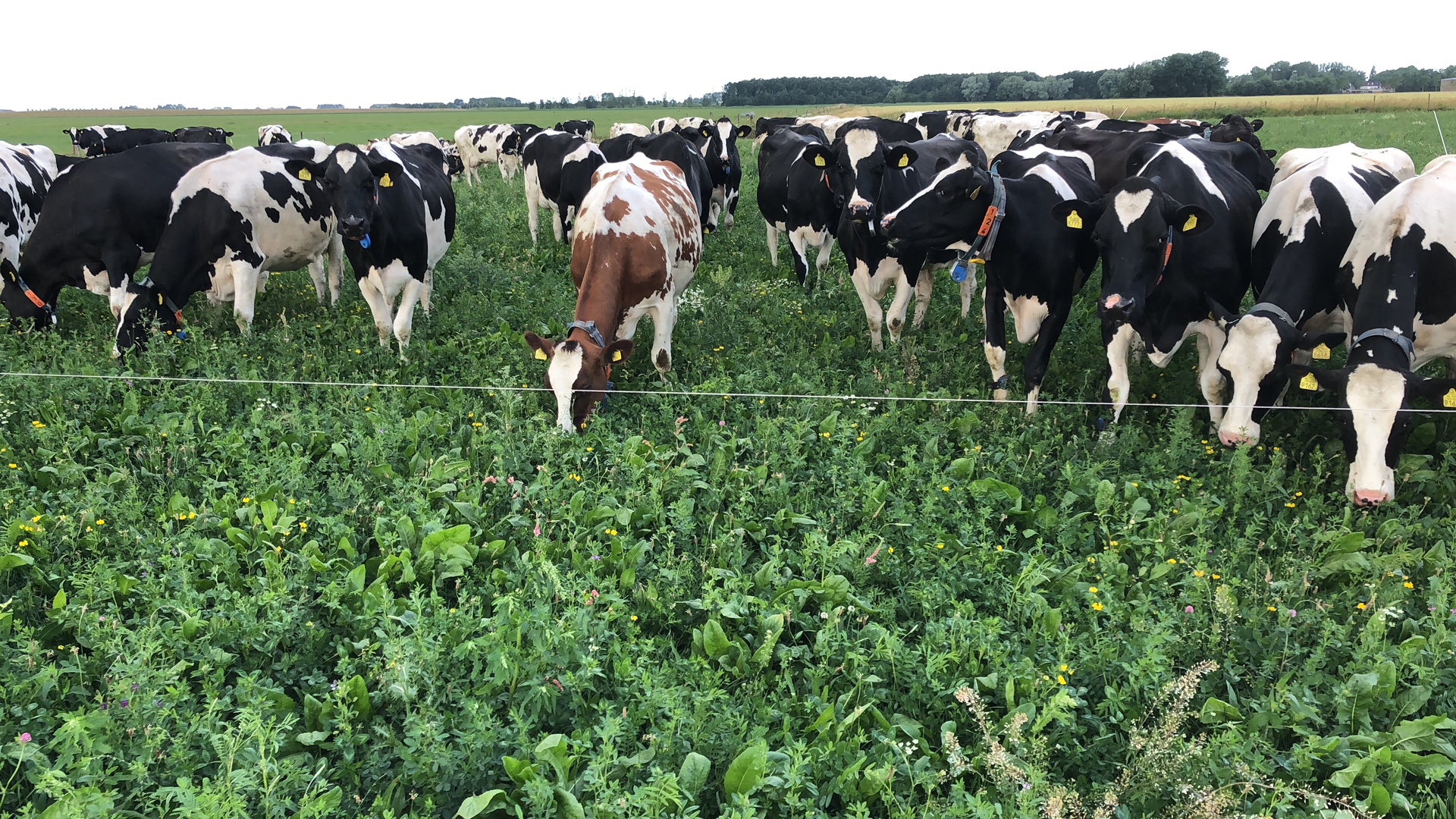 Sinds september 2024 worden onze 115 koeien gemolken door 2 melkrobots. De energie die we daar voor nodig hebben, wekken we voor een groot deel op met een windmolen, zonnepanelen en zonneboilers. De koeien grazen sinds vorig jaar alleen nog in kruidenrijk grasland. Naast 65 hectare grasland hebben we ook 8,5 hectare maisland.